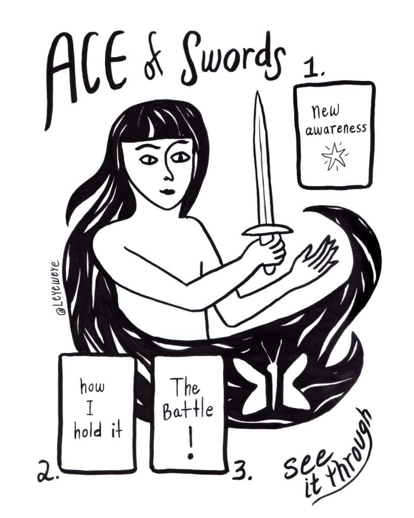 If you are drawn to the Ace of Swords and want to dig deeper, get them outta your deck, make them your mascot, and draw some cards from the rest of the deck with this tarot spread I created!