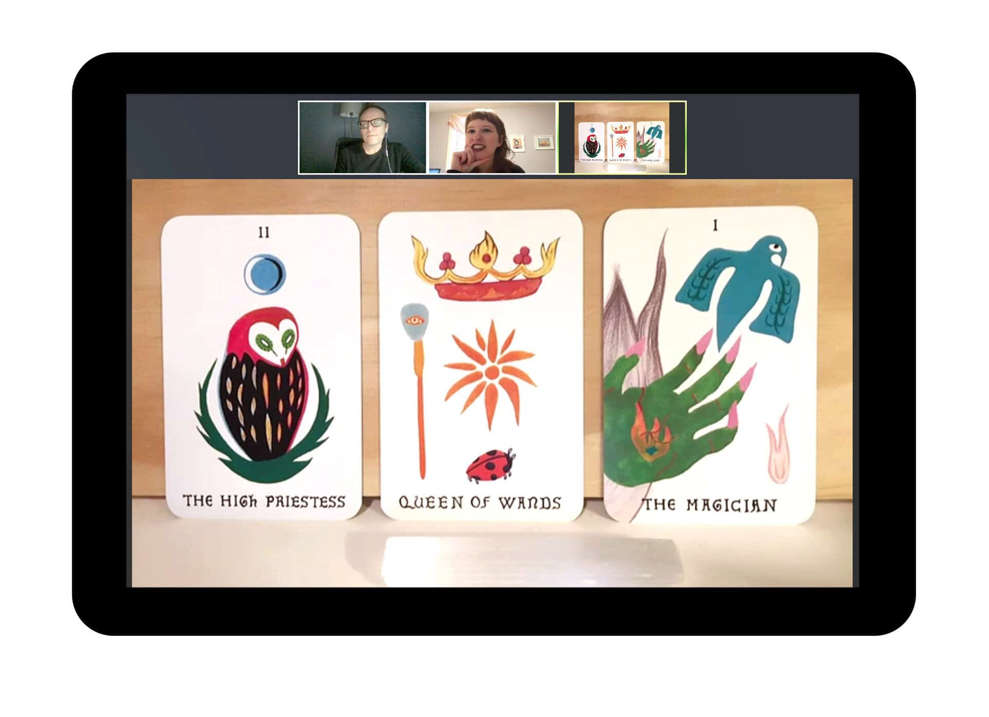 - A recording of the session (if done through Zoom), with an extra screen to see your tarot cards
