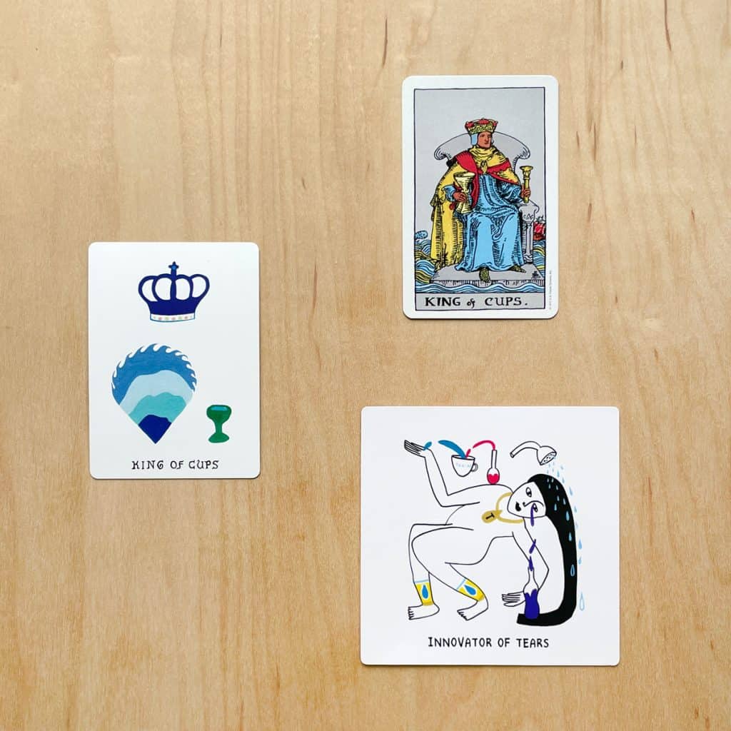 I have seen the King of Cups reversed when folks are dealing with alcoholism. The watery stuff we’re made of wants to be filled, and drinking becomes a way to ease a void. It’s a harsh world, and life is tough. Therapy and community are good places to start.