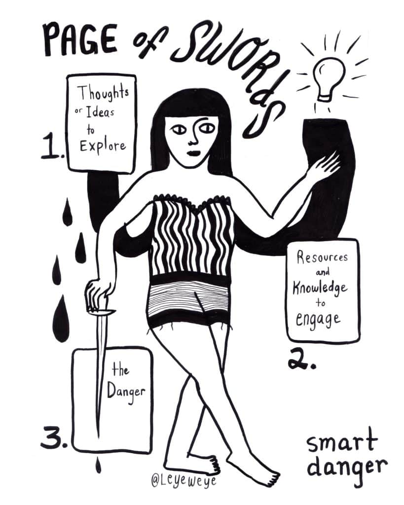 To know if the Page’s sword successfully cuts through the conflict of your situation, read the cards together. Do the surrounding cards suggest clarity and resolution? Or does the Page sow chaos and confusion?