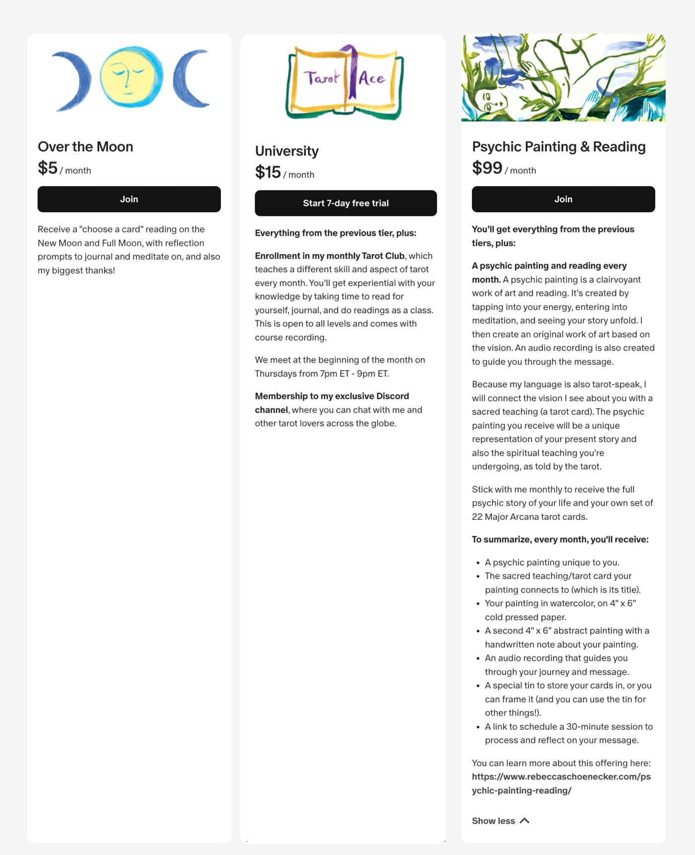 My Patreon, Eye Love Tarot, is here! If you’re not familiar with Patreon, it’s a platform for people to support creatives they believe in. You sign up for a funding tier and receive the associated service every month. Click on anything below to head over there!