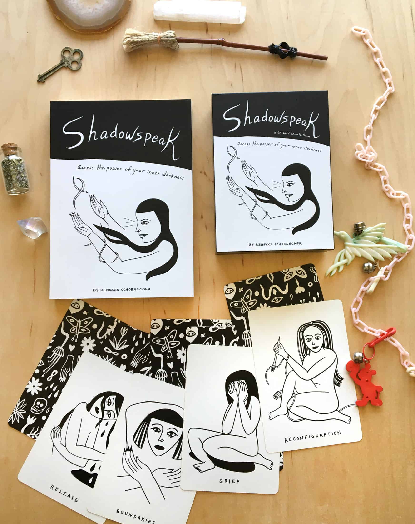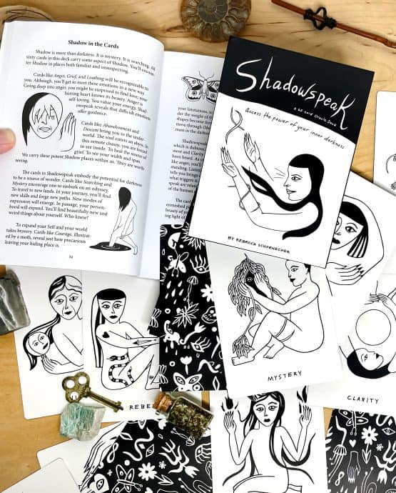 This deck will help you speak to your Shadow. You will become fluent in Shadowspeak, the language of knowing yourself deeply.