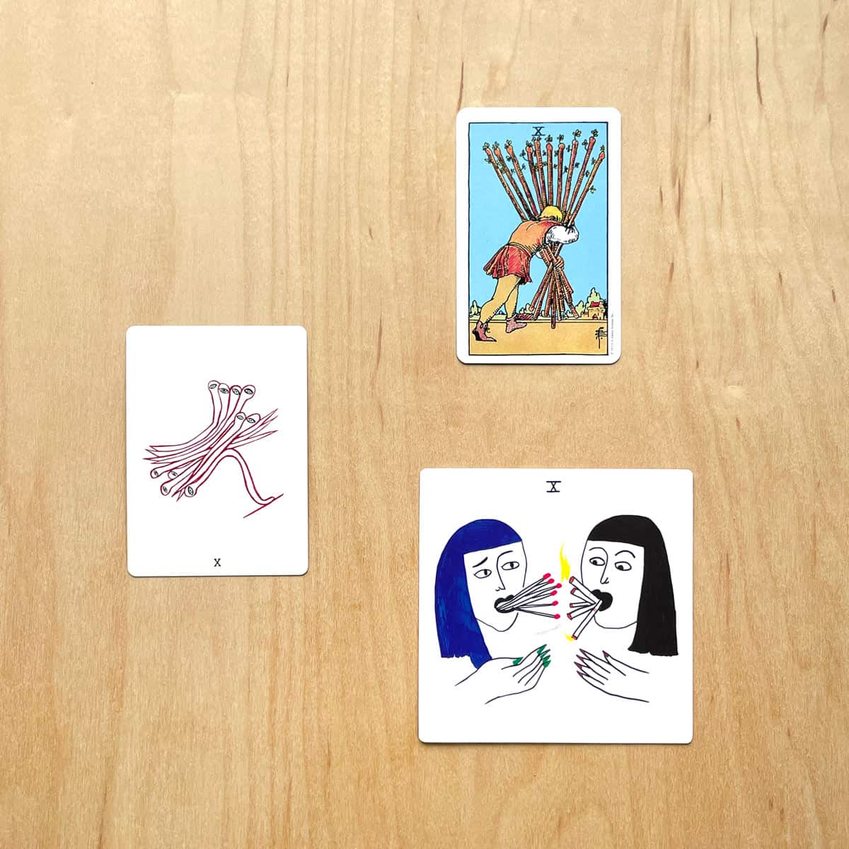 If you are drawn to the Ten of Wands and want to dig deeper, get them out of your deck, make them your mascot, and draw some cards from the rest of the deck with this tarot spread I created!