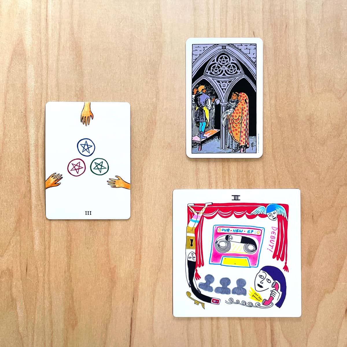 If you are drawn to the Three of Pentacles and want to dig deeper, get the card out of your deck, make them your mascot, and draw some cards from the rest of the deck with this tarot spread I created!